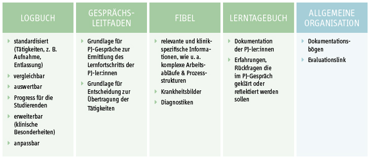 The introduction of the structured uniform PJ-APT logbooks (APT - entrusted professional activities) with subject-specific adaptations will standardize the PJ content in the future. These will be supplemented by the PJ Primer. This can be used to provide PJ students with relevant hospital-specific information, such as contact persons, processes, structures, clinical pictures and diagnostics.